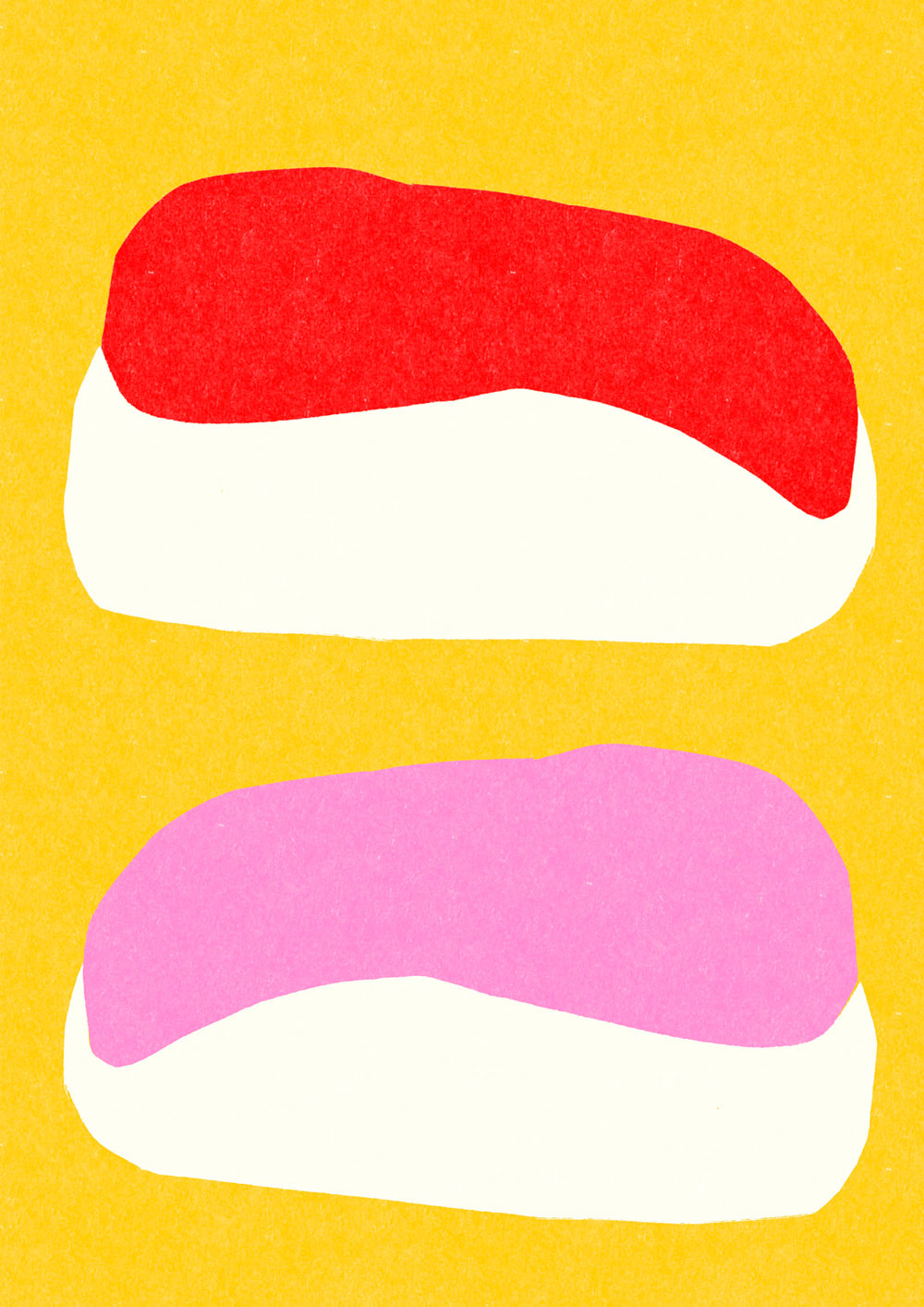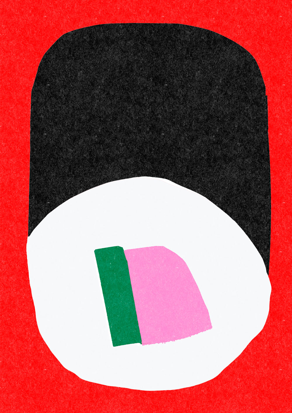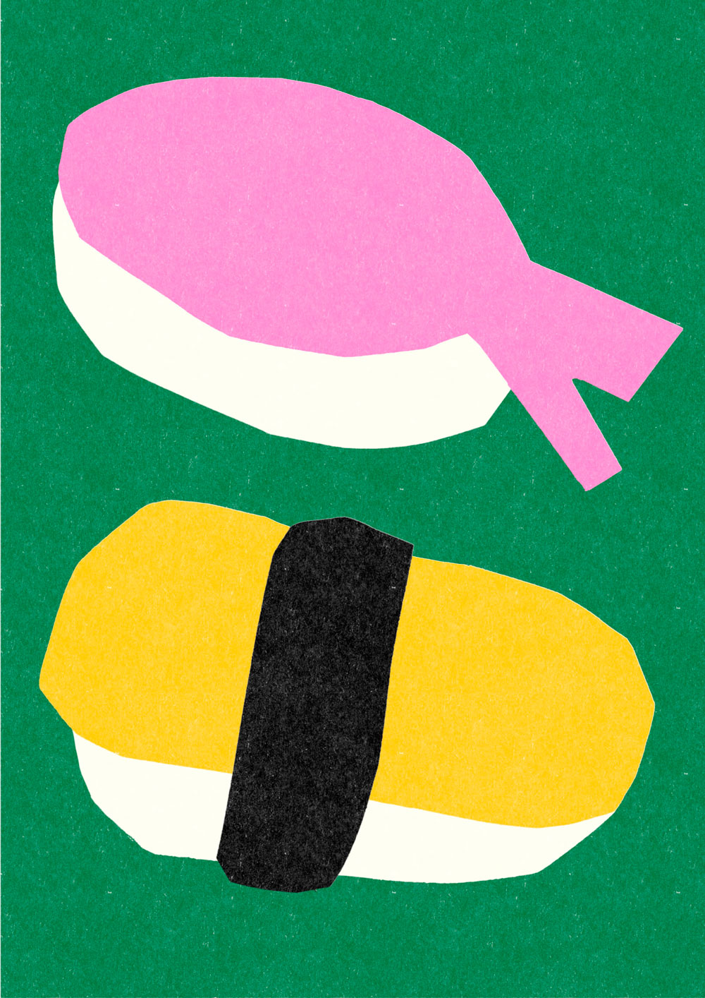 This personal project is a series of illustrations paying tribute to Japanese cuisine, transforming recognizable types of sushi into unique graphic elements. Each piece plays with bold shapes and vibrant colors, creating strong and memorable visual combinations.